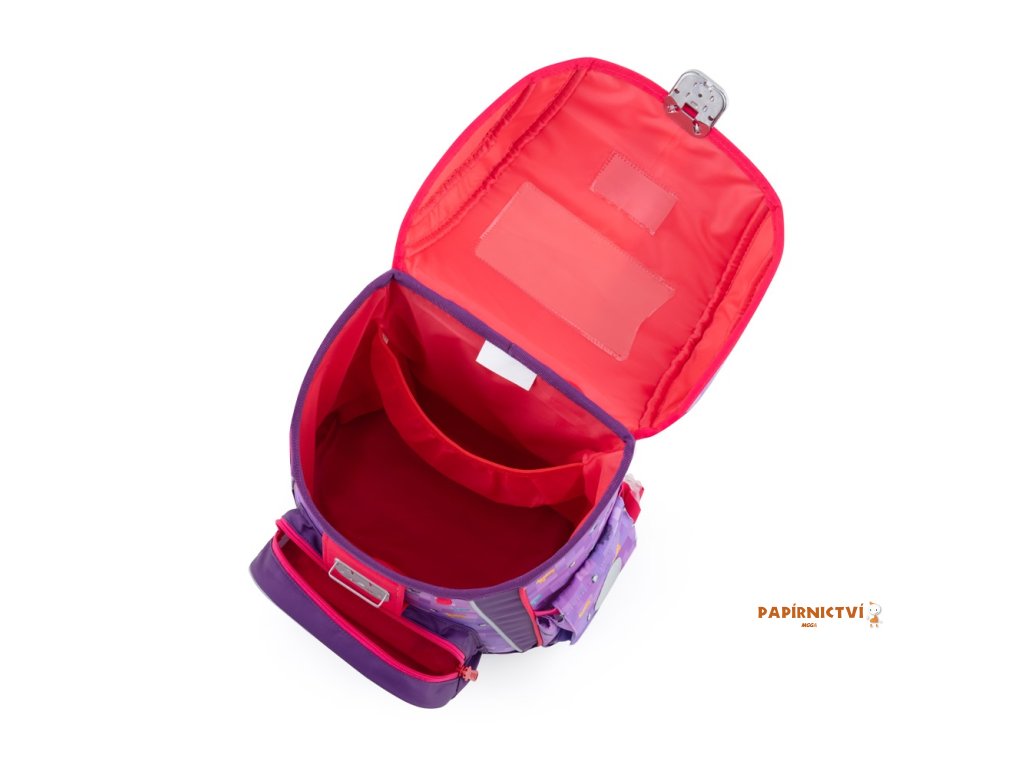 Školní aktovka z řady Premium je anatomicky tvarovaná a zajišťuje tak správné usazení na zádech. Vyztužená záda a vnitřní výztuha udržují stálý tvar batohu. Polstrování je z příjemného prodyšného materiálu, široké měkčené popruhy jsou navrženy tak, aby dokonale přilnuly a rovnoměrně zatížily ramena dítěte. Aktovka se skládá z jedné prostorné komory, kam se pohodlně vejdou všechny školní pomůcky pro děti v 1. a ve 2. třídě. Navíc je opatřena přidávnými háčky pro uchycení popruhů. Dno batohu je z pevného materiálu, chrání tím obsah před převržením a vysypáním. Zapínání je na bezpečnostní kovovou přezku s reflexní odrazkou. Přední kapsička je určena na svačinu, nechybí řada reflexních prvků, díky kterým je aktovka viditelnější. Délka zádového panelu: 33 cm. Objem: 27 l. Nosnost: 8 kg.