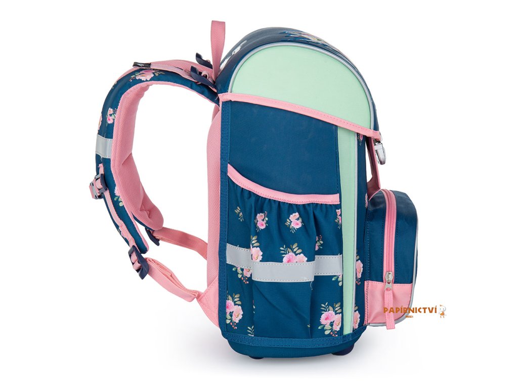 Školní aktovka z řady Premium je anatomicky tvarovaná a zajišťuje tak správné usazení na zádech. Vyztužená záda a vnitřní výztuha udržují stálý tvar batohu. Polstrování je z příjemného prodyšného materiálu, široké měkčené popruhy jsou navrženy tak, aby dokonale přilnuly a rovnoměrně zatížily ramena dítěte. Aktovka se skládá z jedné prostorné komory, kam se pohodlně vejdou všechny školní pomůcky pro děti v 1. a ve 2. třídě. Dno batohu je z pevného materiálu, chrání tím obsah před převržením a vysypáním. Zapínání je na bezpečnostní přezku. Přední kapsička je určena na svačinu, nechybí řada reflexních prvků, díky kterým je aktovka viditelnější. Objem: 28 l. Nosnost: 8kg.