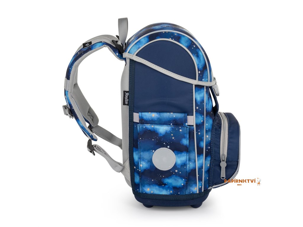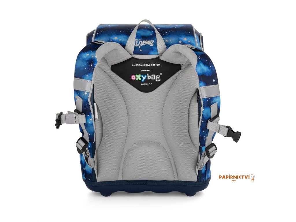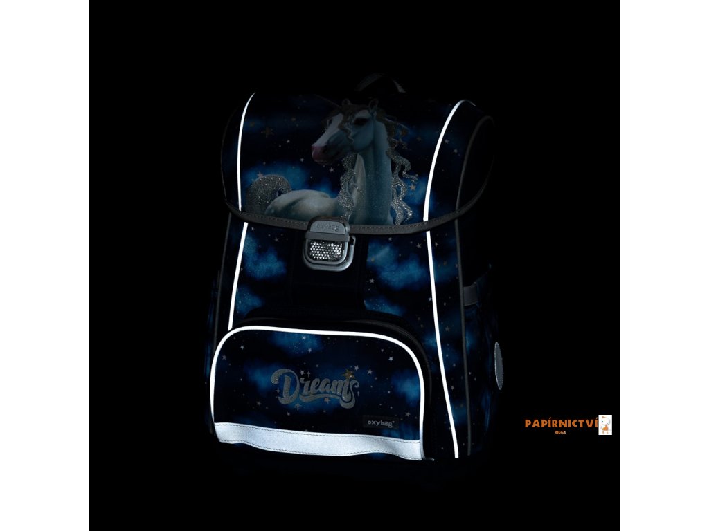 Školní aktovka z řady Premium je anatomicky tvarovaná a zajišťuje tak správné usazení na zádech. Vyztužená záda a vnitřní výztuha udržují stálý tvar batohu. Polstrování je z příjemného prodyšného materiálu, široké měkčené popruhy jsou navrženy tak, aby dokonale přilnuly a rovnoměrně zatížily ramena dítěte. Aktovka se skládá z jedné prostorné komory, kam se pohodlně vejdou všechny školní pomůcky pro děti v 1. a ve 2. třídě. Navíc je opatřena přidávnými háčky pro uchycení popruhů. Dno batohu je z pevného materiálu, chrání tím obsah před převržením a vysypáním. Zapínání je na bezpečnostní kovovou přezku s reflexní odrazkou. Přední kapsička je určena na svačinu, nechybí řada reflexních prvků, díky kterým je aktovka viditelnější. Délka zádového panelu: 33 cm. Objem: 27 l. Nosnost: 8 kg.