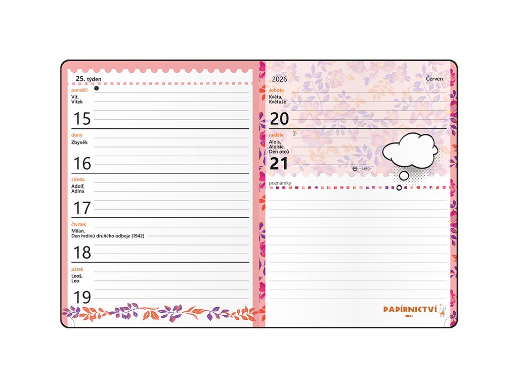 Školní diář Týdenní diář - Student - V8 - lamino - kapesní - Růžový BTS9-2-26
