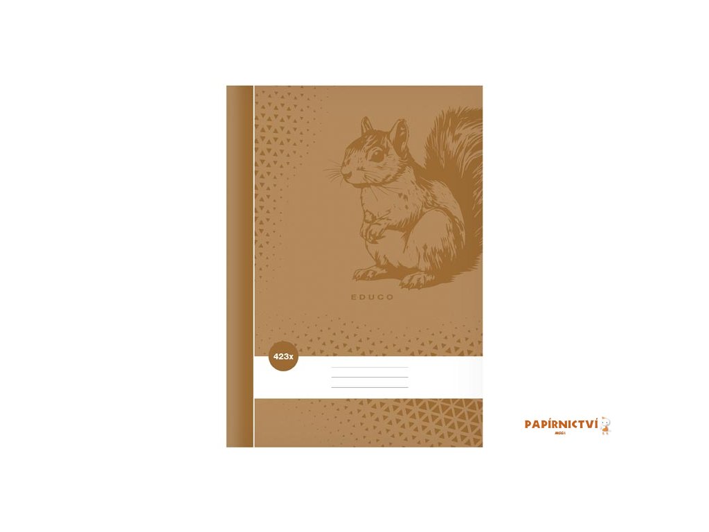 Školní sešit linkovaný/čistý ve formátu A4, v hnědé barvě, s motivem veverky, v deskách z křídového papíru. Každá stránka je ze 2/3 linkovaná a z 1/3 čistá. Sešit je určený pro žáky I. stupně ZŠ.Typ: 423x