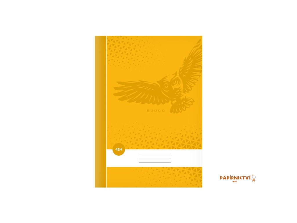 Školní linkovaný sešit ve formátu A4, ve žluté barvě, s motivem sovy, v deskách z křídového papíru.Typ: 424