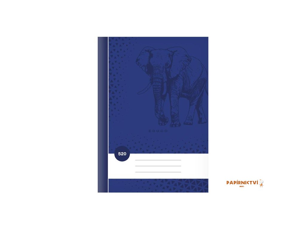 Školní sešit čistý bez linek ve formátu A5, v tmavě fialové barvě, s motivem slona, v deskách z křídového papíru.Typ: 520