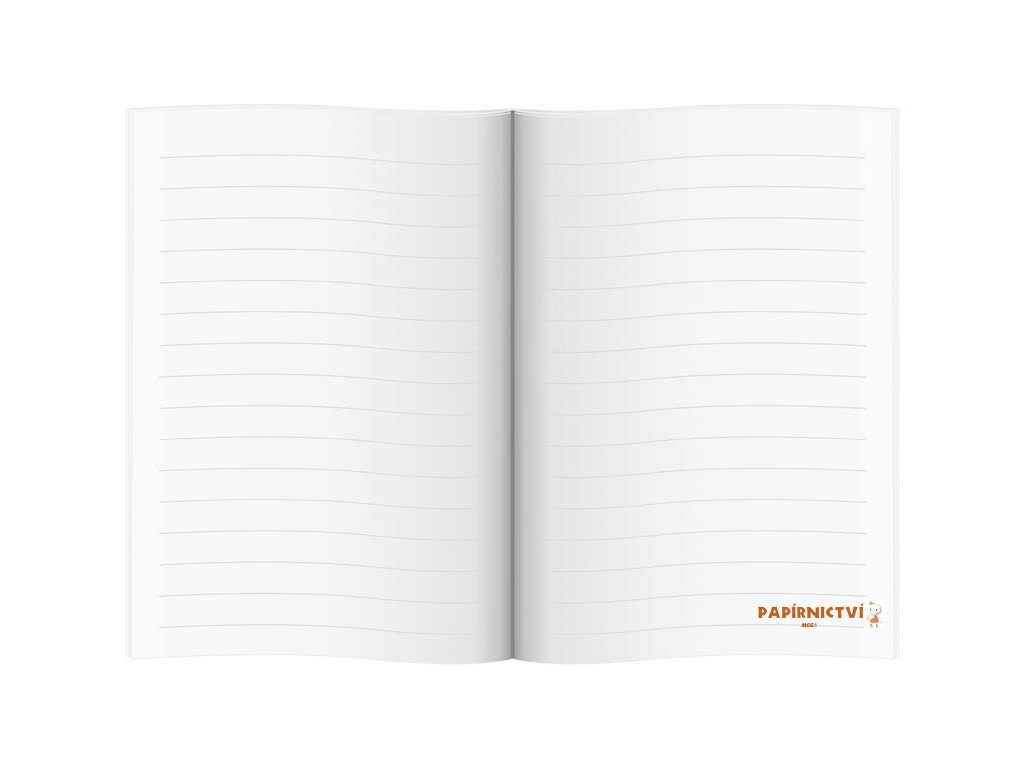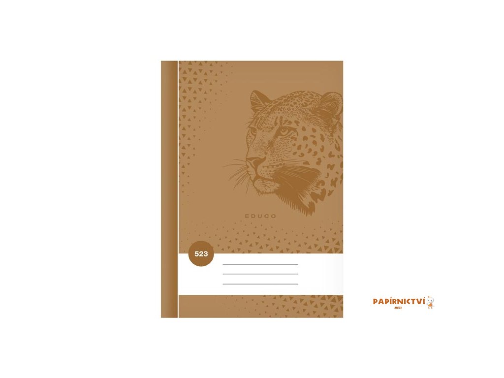 Školní linkovaný sešit ve formátu A5, v hnědé, s motivem leoparda, v deskách z křídového papíru. Stránky jsou bez okrajů.Typ: 523