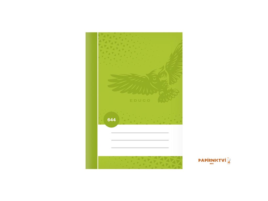 Školní linkovaný sešit ve formátu A6, v zelené barvě, s motivem sovy, v deskách z křídového papíru. Kvalitně zpracovaný „notýsek“ je vhodný především pro děti na 1. stupni, ale hodí se na poznámky prakticky pro každého žáka.Typ: 644