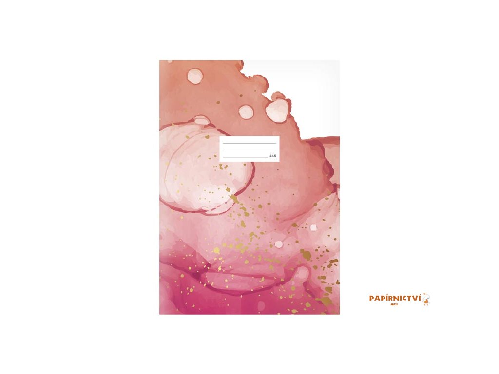 Školní sešit ve formátu A4, čtverečkovaný, v růžovo-červené barvě, s abstraktním motivem, v originálních deskách s matným laminem a lokálním UV lakem.Typ: 445