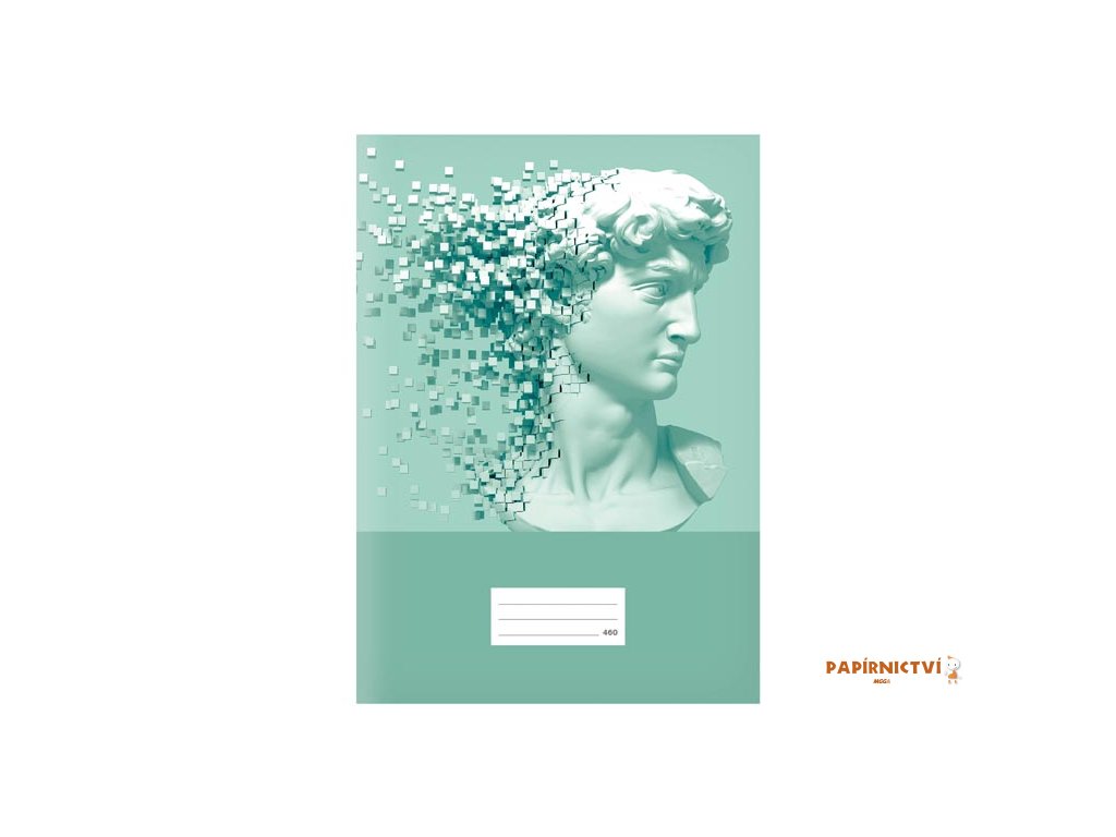 Klasika v moderním pojetí!Obálka školního sešitu LUX zobrazuje bustu sochy Davida, která se originálně rozpadá na drobné kostky, čímž propojuje klasickou eleganci s moderním designem.