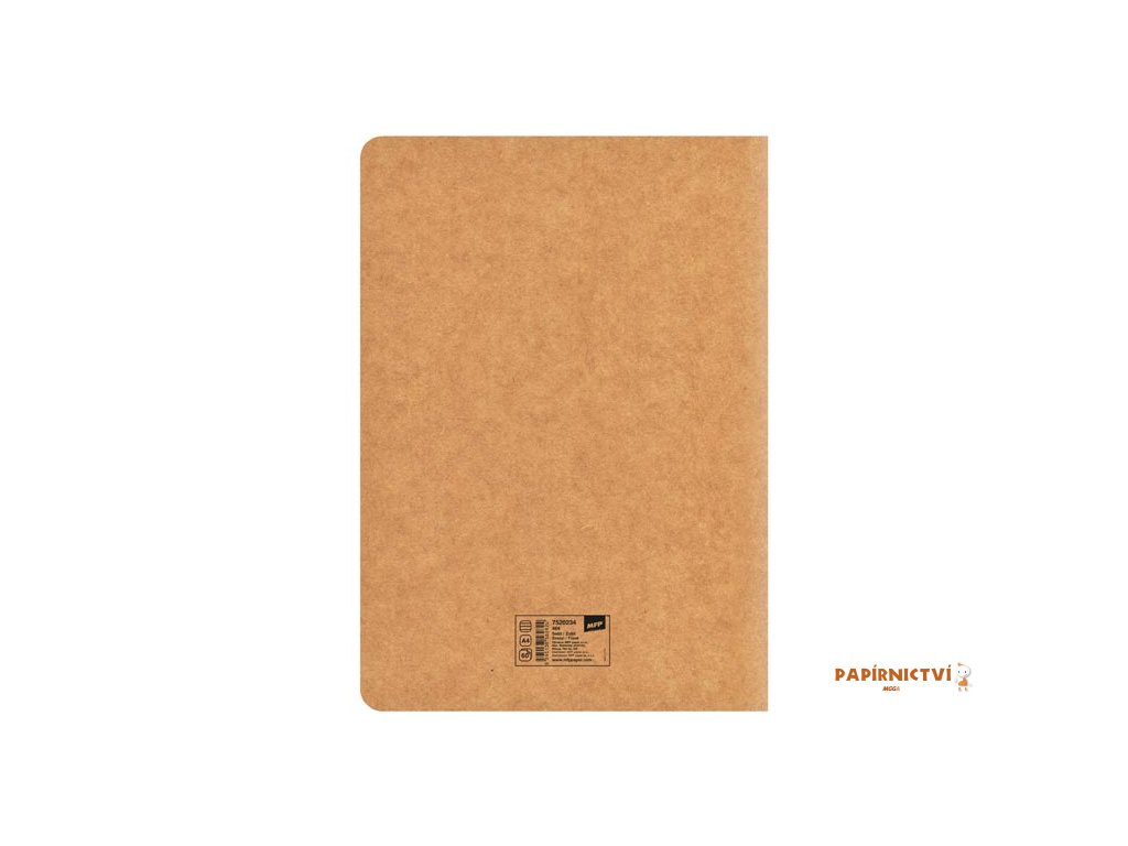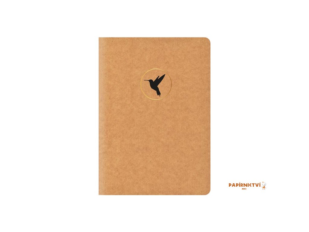 Školní linkovaný sešit ve formátu A4, v hnědé barvě, s motivem kolibříka, v originálních deskách z kraftového papíru. Stránky jsou opatřeny okraji o šířce 1,5 cm.Typ: 464