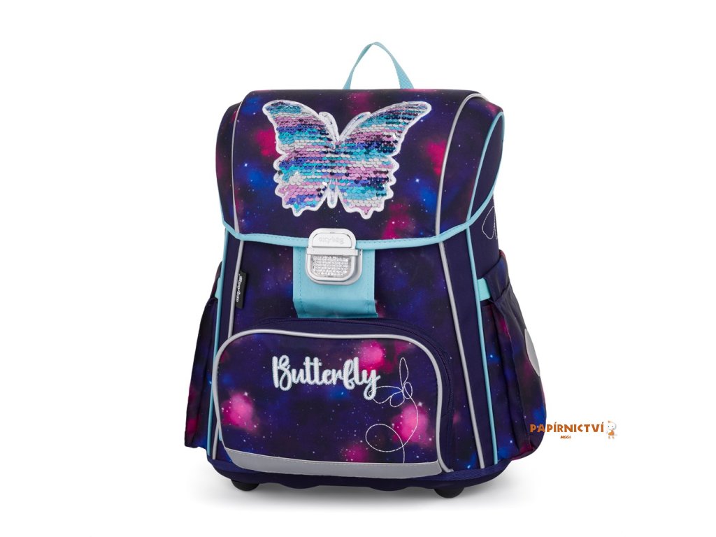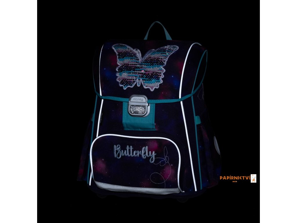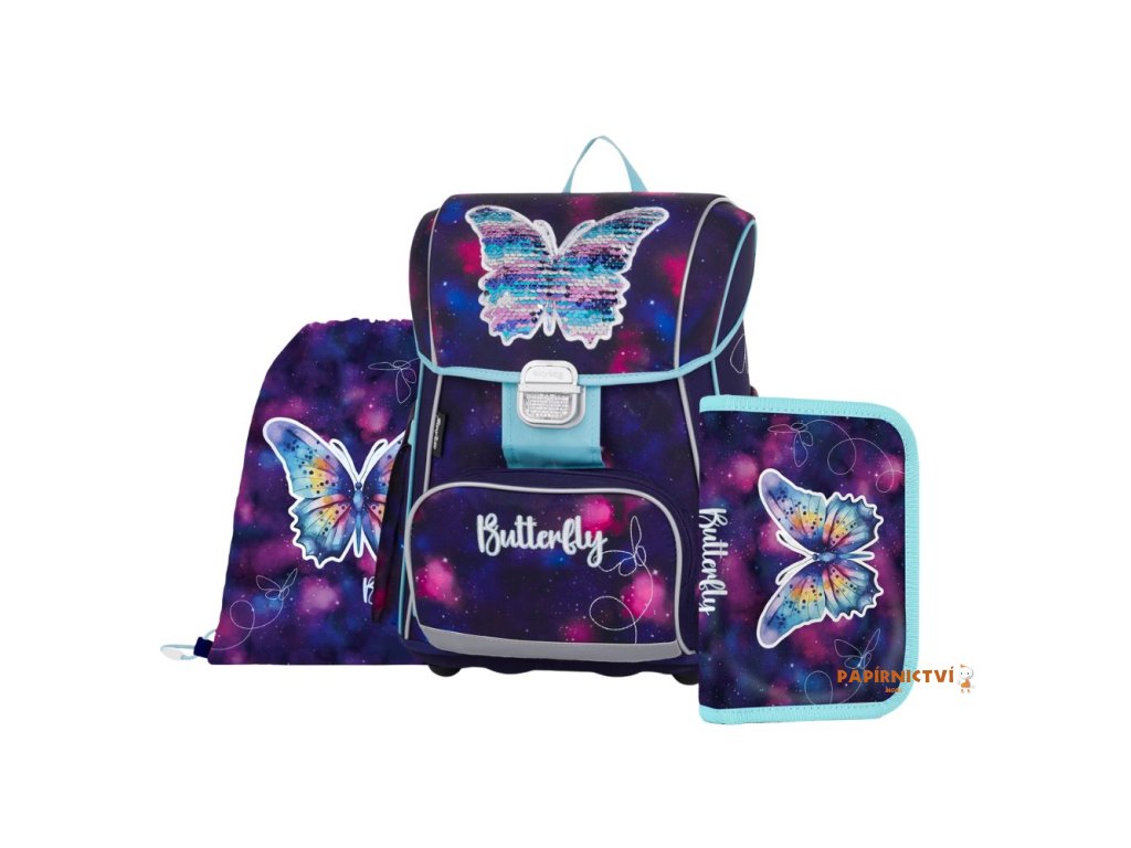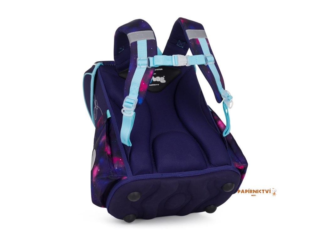 Aktovka: Školní aktovka z řady Premium je anatomicky tvarovaná a zajišťuje tak správné usazení na zádech. Vyztužená záda a vnitřní výztuha udržují stálý tvar batohu. Polstrování je z příjemného prodyšného materiálu, široké měkčené popruhy jsou navrženy tak, aby dokonale přilnuly a rovnoměrně zatížily ramena dítěte. Aktovka se skládá z jedné prostorné komory, kam se pohodlně vejdou všechny školní pomůcky pro děti v 1. a ve 2. třídě. Dno batohu je z pevného materiálu, chrání tím obsah před převržením a vysypáním. Zapínání je na bezpečnostní kovovou přezku s reflexní odrazkou. Přední kapsička je určena na svačinu, nechybí řada reflexních prvků, díky kterým je aktovka viditelnější. Délka zádového panelu: 33 cm. Objem: 27 l. Nosnost: 8 kg. Sáček: Praktický sáček na cvičky nebo přezůvky do školy. Uzavírá se snadno stažením šňůrek. Penál: Jednopatrový školní penál se dvěma chlopněmi bez náplně. Gumová poutka k uchycení psacích potřeb. Na vnitřní chlopni je průhledná fólie na rozvrh hodin..