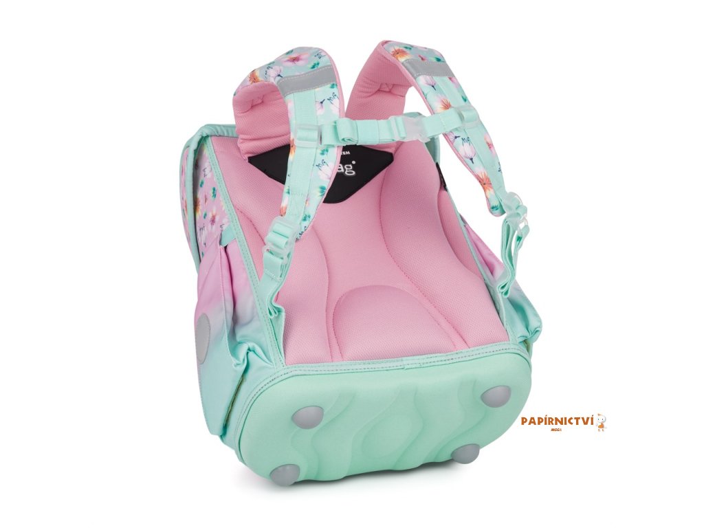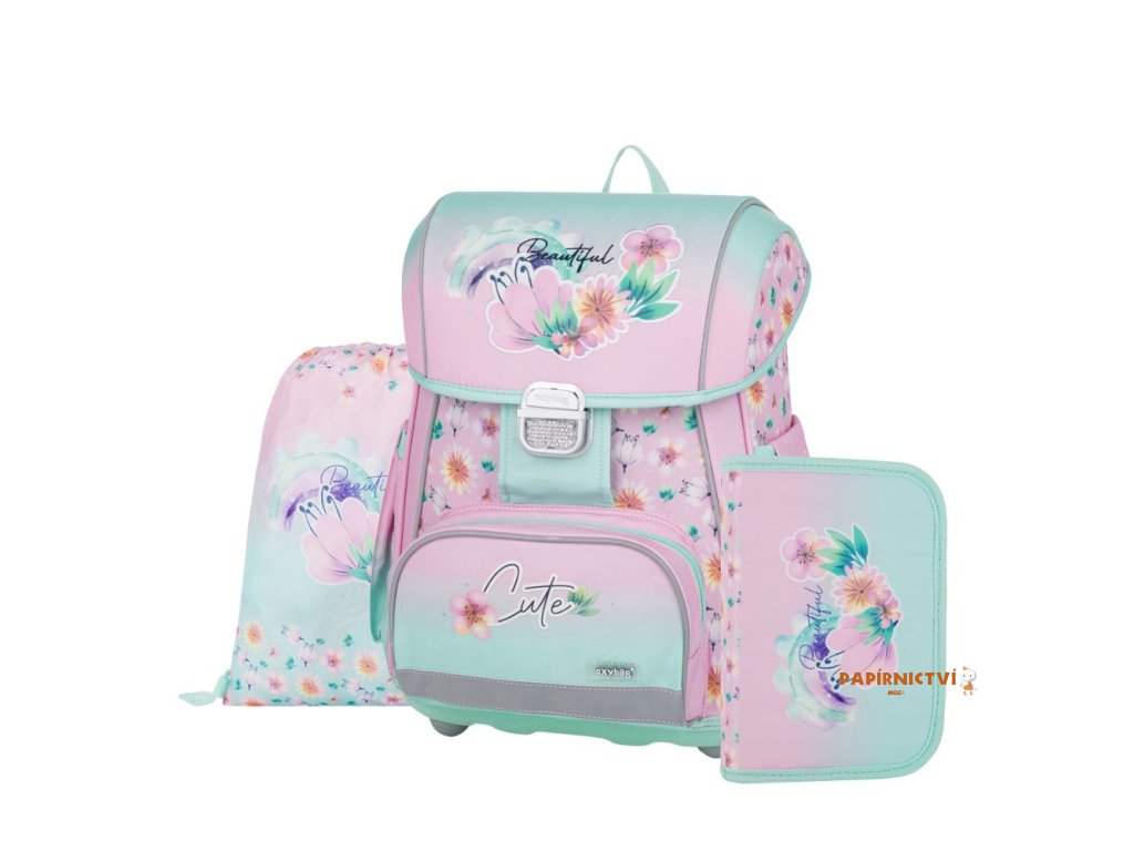 Aktovka: Školní aktovka z řady Premium je anatomicky tvarovaná a zajišťuje tak správné usazení na zádech. Vyztužená záda a vnitřní výztuha udržují stálý tvar batohu. Polstrování je z příjemného prodyšného materiálu, široké měkčené popruhy jsou navrženy tak, aby dokonale přilnuly a rovnoměrně zatížily ramena dítěte. Aktovka se skládá z jedné prostorné komory, kam se pohodlně vejdou všechny školní pomůcky pro děti v 1. a ve 2. třídě. Dno batohu je z pevného materiálu, chrání tím obsah před převržením a vysypáním. Zapínání je na bezpečnostní kovovou přezku s reflexní odrazkou. Přední kapsička je určena na svačinu, nechybí řada reflexních prvků, díky kterým je aktovka viditelnější. Délka zádového panelu: 33 cm. Objem: 27 l. Nosnost: 8 kg. Sáček: Praktický sáček na cvičky nebo přezůvky do školy. Uzavírá se snadno stažením šňůrek. Penál: Jednopatrový školní penál se dvěma chlopněmi bez náplně. Gumová poutka k uchycení psacích potřeb. Na vnitřní chlopni je průhledná fólie na rozvrh hodin.