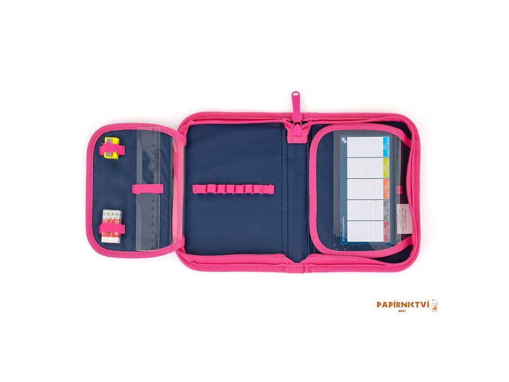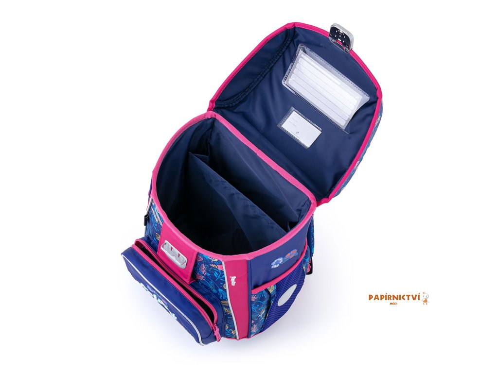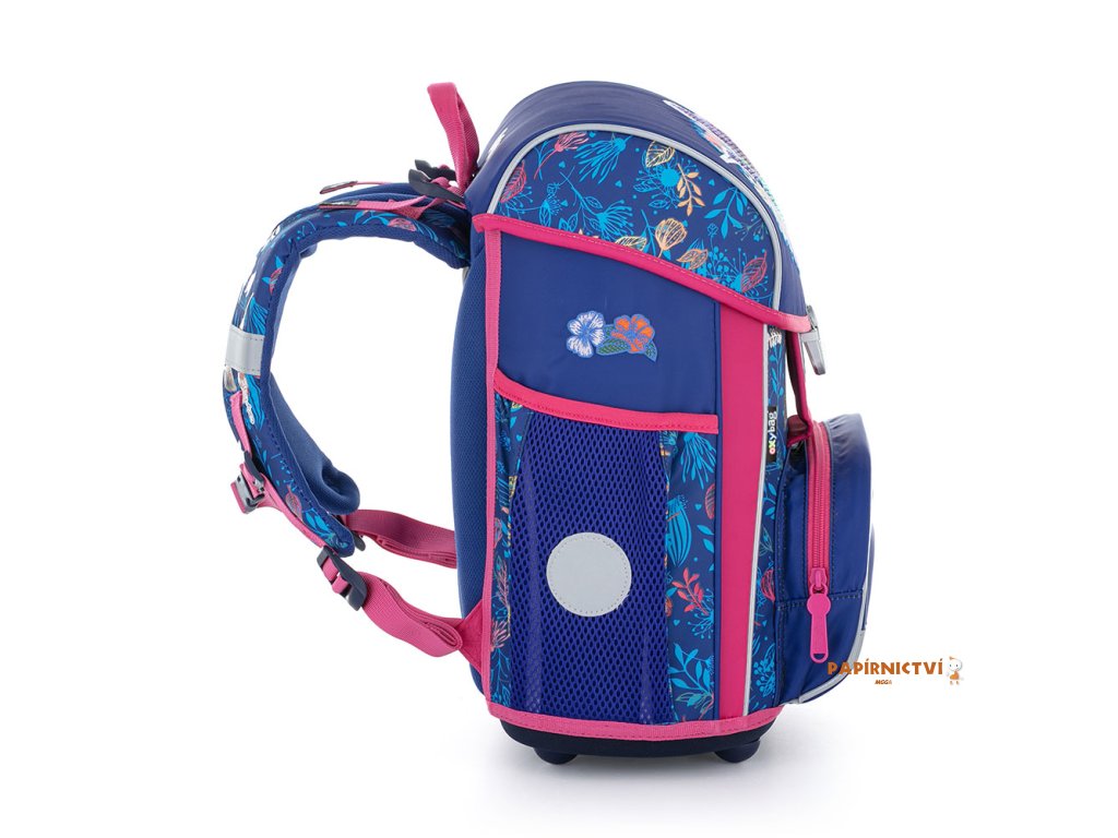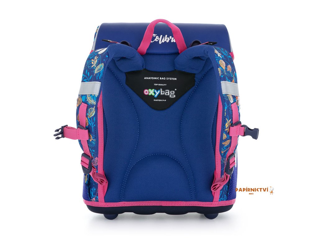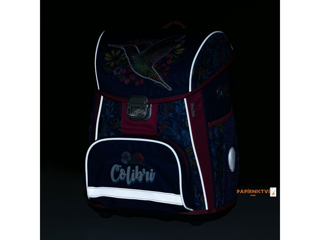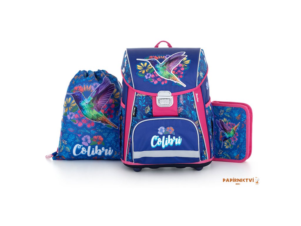 Aktovka: Školní aktovka z řady Premium s motivem kolibříka je anatomicky tvarovaná a zajišťuje tak správné usazení na zádech. Vyztužená záda a vnitřní výztuha udržují stálý tvar batohu. Polstrování je z příjemného prodyšného materiálu, široké měkčené popruhy jsou navrženy tak, aby dokonale přilnuly a rovnoměrně zatížily ramena dítěte. Aktovka se skládá z jedné prostorné komory, kam se pohodlně vejdou všechny školní pomůcky pro děti v 1. a ve 2. třídě. Dno batohu je z pevného materiálu, chrání tím obsah před převržením a vysypáním. Zapínání je na bezpečnostní přezku. Přední kapsička je určena na svačinu, nechybí řada reflexních prvků, díky kterým je aktovka viditelnější. Sáček: Školní sáček na cvičky vyrobený z kvalitního materiálu. Sáček se uzavírá stažením šňůrek. Vhodný jak do školy, tak na sport a další volnočasové aktivity dětí. Penál: Jednopatrový školní penál se dvěma chlopněmi bez náplně. Gumová poutka k uchycení psacích potřeb. Na vnitřní chlopni je průhledná fólie pro rozvrh hodin.