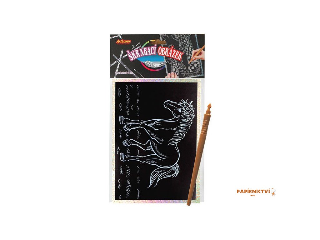 Škrabací obrázek- Holografický 20x15 cm- koník