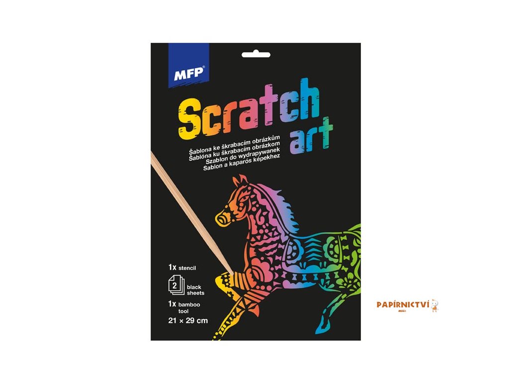 Škrabací obrázek šablona A4 Kůň 21x29cm + 2 listy 1032219