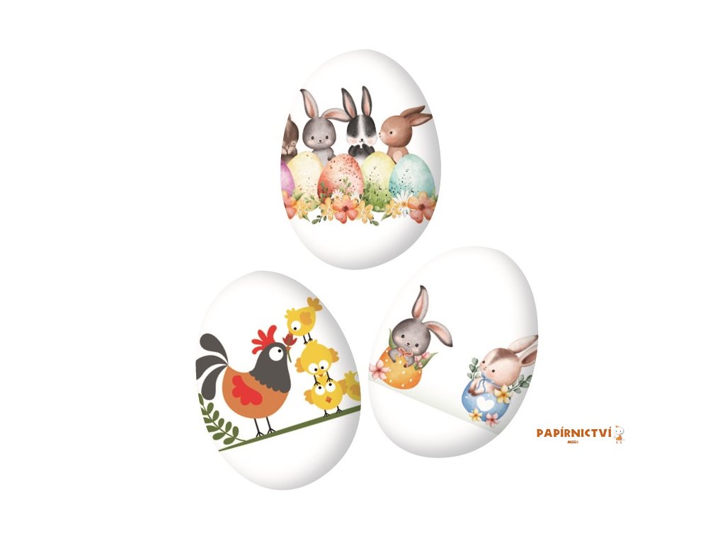 Smršťovací dekorace na vejce s velikonočními zvířátky 12 ks 7758