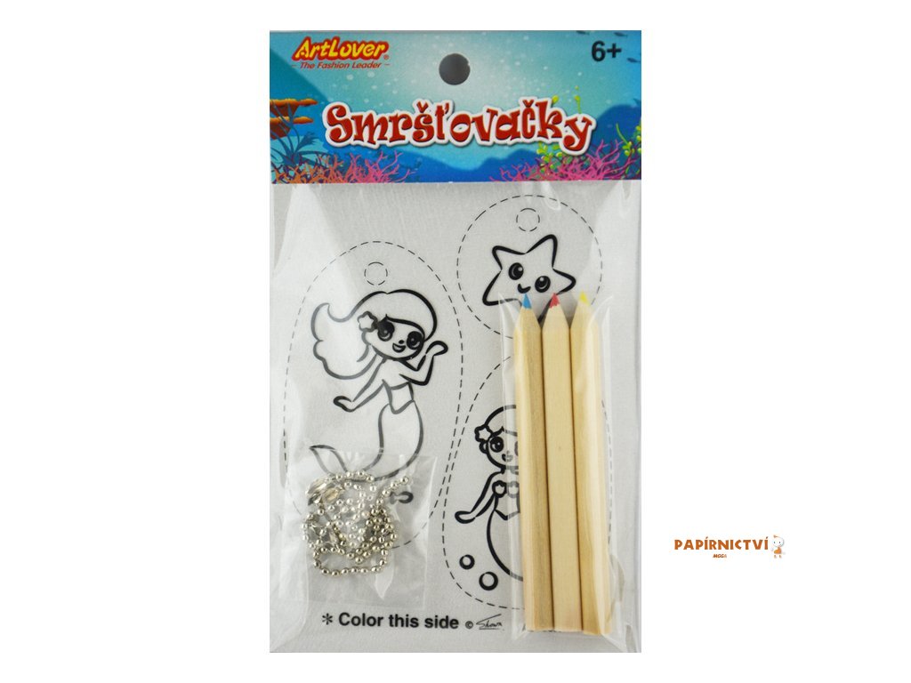 Balení obsahuje: 3 ks pastelek - modrá, červená, žlutá, 3x řetízek, předkreslenou smršťovací folii.