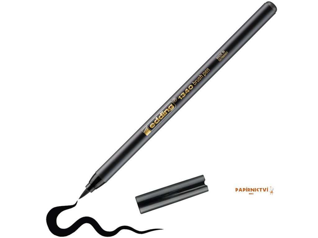 Štetcový popisovac Edding 1340, cerný. Tento štetcový fix z rady Edding 1340 má pružný a mekký hrot s promennou šírkou tahu 1–3 mm, který usnadnuje kombinaci tenkých detailu i širokých tahu a je ideální pro hand lettering i ilustrace. Inkoust na vodní bázi je bez zápachu, rychleschnoucí, barva vyniká sytostí a nepropíjí skrz papír, což prispívá k kreativnímu a cistému výsledkuDoplňkové parametry