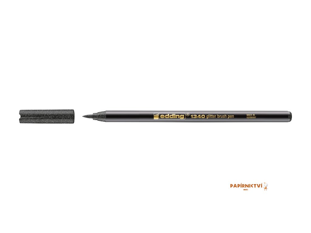 Trpytivý brushpen edding 1340 s inkoustem na bázi vody pro ozdobné psaní a kaligrafii. Lehce trpytivá stopa dodá textu slavnostní perletový vzhled. Glitrové štetcové fixy jsou obzvlášt vhodné pro dekorativní psaní na svetlý papír (pohlednice, pránícka, jmenovky i vzkazy). Flexibilní štetcový hrot o šírce stopy 1-6 mm. Ukládejte nejlépe hrotem dolu. Vyrobeno v Nemecku.Doplňkové parametry
