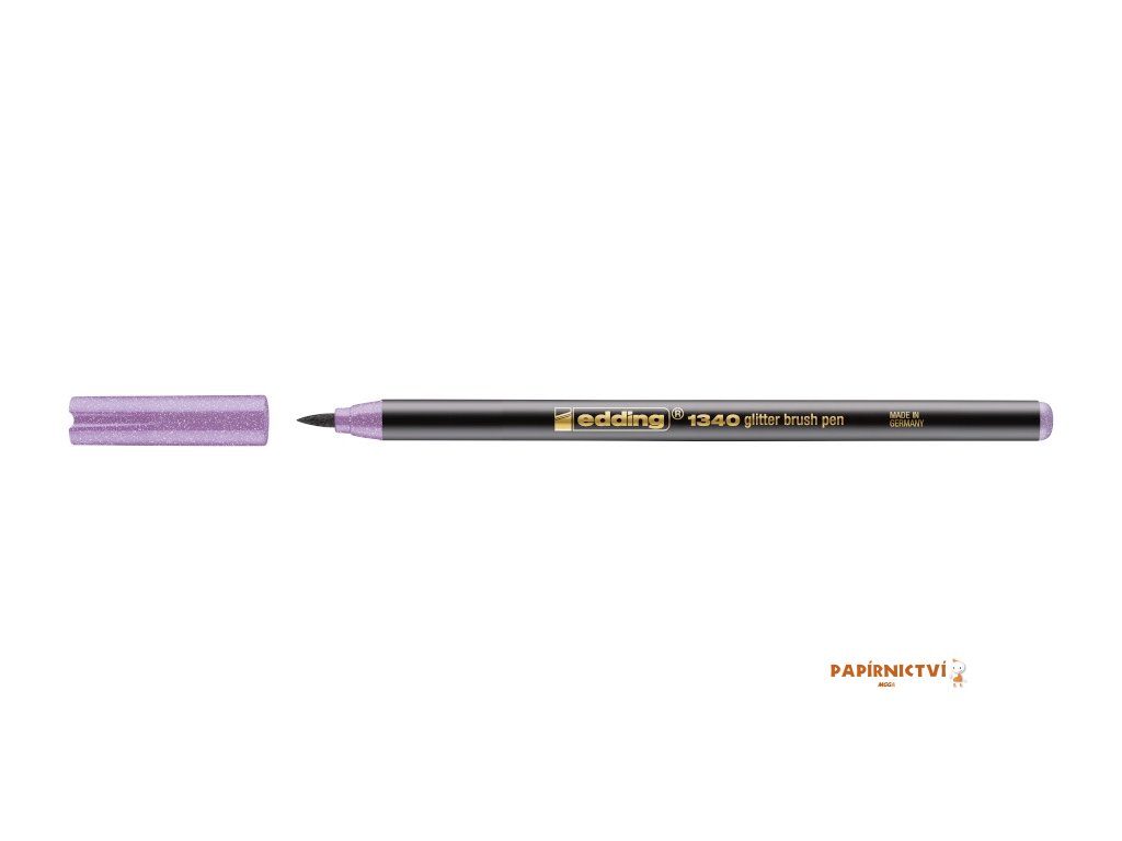 Trpytivý brushpen edding 1340 s inkoustem na bázi vody pro ozdobné psaní a kaligrafii. Lehce trpytivá stopa dodá textu slavnostní perletový vzhled. Glitrové štetcové fixy jsou obzvlášt vhodné pro dekorativní psaní na svetlý papír (pohlednice, pránícka, jmenovky i vzkazy). Flexibilní štetcový hrot o šírce stopy 1-6 mm. Ukládejte nejlépe hrotem dolu. Vyrobeno v Nemecku.Doplňkové parametry