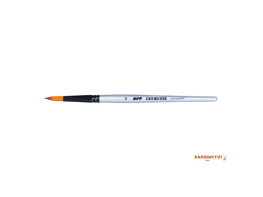 Štětec kulatý s jemným syntetickým vlasem tvarovaným do špičky a dřevěnou rukojetí. Díky syntetickým vláknům usnadňuje roztírání barev a dobře drží tvar. Vlákno je elastické a vyniká vysokými absorpčními schopnostmi. Je méně náchylný k poškození barvami a ředidly než štětec přírodní.Je také výrazně odolnjěší proti poškození či lámaní. Snadno se udržuje v čistotě, a proto vykazuje delší životnost. Hodí se jak pro školní využití, tak i pro různé malířské techniky a povrchy. Ideální pro malování detailů, linek nebo vybarvování. Štětiny jsou chráněny plastovou krytkou.Velikost: 12