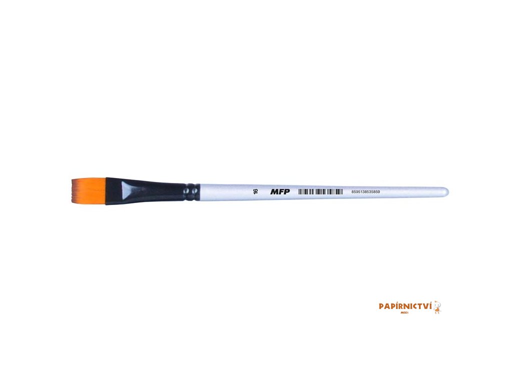 Štětec plochý s jemným syntetickým vlasem a dřevěnou rukojetí. Díky syntetickým vláknům usnadňuje roztírání barev. Vlákno je elastické a vyniká vysokými absorpčními schopnostmi. Je méně náchylný k poškození barvami a ředidly než štětec přírodní. Je také výrazně odolnjěší proti poškození či lámaní. Snadno se udržuje v čistotě, a proto vykazuje delší životnost. Hodí se jak pro školní využití, tak i pro různé malířské techniky a povrchy. Ideální pro malování větších ploch nebo stínování. Lze s ním malovat na plocho nebo hranou tenké linky. Určený pro hutnější barvy, kde je důležitá pevnost a odolnost.