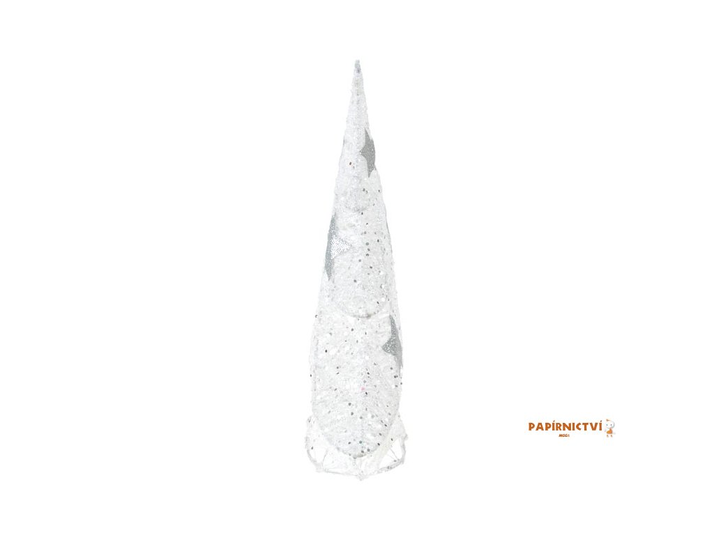 Vánoční dekorace ve tvaru bílého, vánočního stromečku s hvězdami. Vánoční výzdoba, která zkrášlí jak interiér, tak i exteriér. Tenhle stromeček můžete, ale i dále dekorovat podle vaší fantazie.Uvedená cena je za 1 ks.