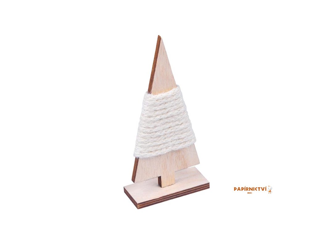 Vánoční dřevěná dekorace stromek na podstavci. Stromek je omotán motouzem v bílé barvě. Díky podstavci ho můžete kamkoliv postavit. Vytvořte si doma příjemnou vánoční atmosféru a vyzdobte si svůj domov touto krásnou neotřelou dekorací.Materiál: dřevo