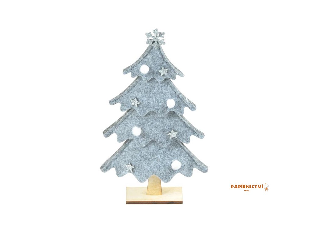 Stromek filcový, šedý. Krásná, vánoční dekorace v designu šedého stromečku, poslouží jako dekorace nejen do interiéru ale i do exteriéru. Tato krásná vánoční dekorace jistě navodí vánoční atmosféru.Velikost: 220 mm