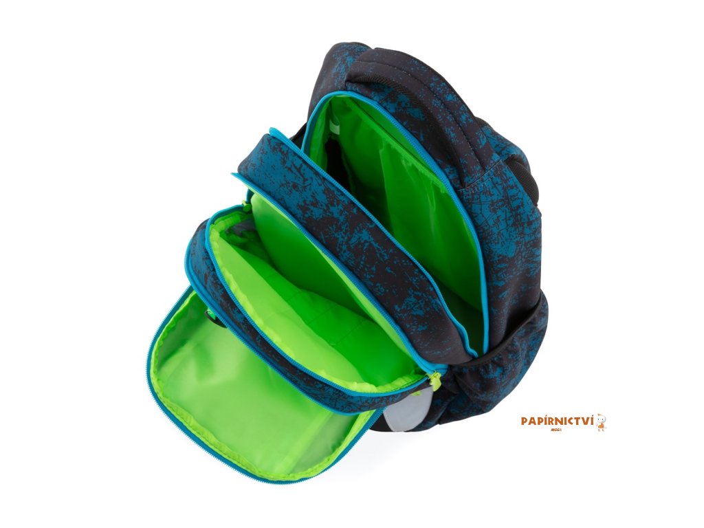 Batoh z řady OXY Touch je ideální volbou pro školáky od 3. třídy, kteří potřebují dostatek prostoru na vše důležité do školy i na volnočasové aktivity. Tříkomorové uspořádání batohu poskytuje dostatek místa na učebnice, sešity, svačinu a další nezbytnosti. Hlavní prostorná komora obsahuje přihrádku na notebook, zatímco přední kapsa je vybavena organizérem a karabinou na klíče. Do boční kapsy snadno uložíte láhev s pitím. Díky anatomicky tvarovaným a prodyšným zádům spolu s nastavitelnými ramenními a hrudními popruhy se batoh pohodlně nosí i při plném zatížení. Zpevněné nepromokavé dno spolehlivě chrání obsah před vlhkostí, reflexní prvky zase zajišťují lepší viditelnost dítěte na cestě. Na přední straně batohu se nachází praktická gumička, pod kterou lze upevnit například tenkou mikinu. Délka zádového panelu je 43 cm, objem činí 25 l, hmotnost batohu je 900 g a jeho nosnost je 8 kg.