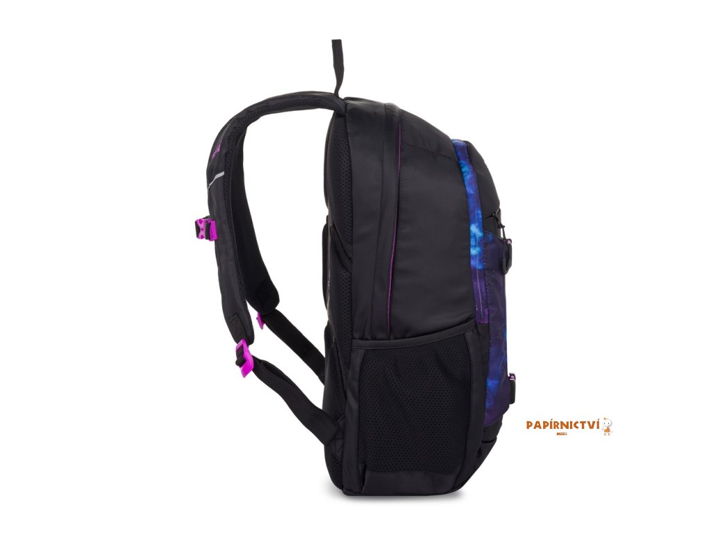 Studentský batoh z řady OXY Zero je ideální společník do školy, práce i na volný čas. Odlehčená konstrukce, ergonomické polstrování zad a nastavitelné ramenní popruhy zajišťují pohodlí i při delším nošení. Tříkomorový batoh poskytuje dostatek prostoru na sešity, učebnice, dokumenty nebo osobní věci. Praktická kapsa na notebook, organizér s karabinou a skrytá kapsa v zádovém panelu pomáhají udržet vše přehledně uspořádané. Na přední straně batohu se nachází dvě přezky. Univerzální design se skvěle hodí na přednášky, do kanceláře i na výlety. Délka zádového panelu je 47 cm, objem činí 27 l, hmotnost batohu je 830 g a jeho nosnost je 8 kg.