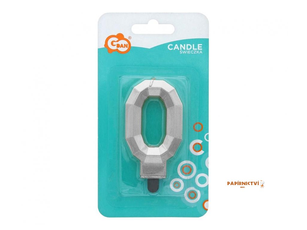 Svíčka číslo 0 - Diamant, stříbrná metalíza, 7,6 cm
