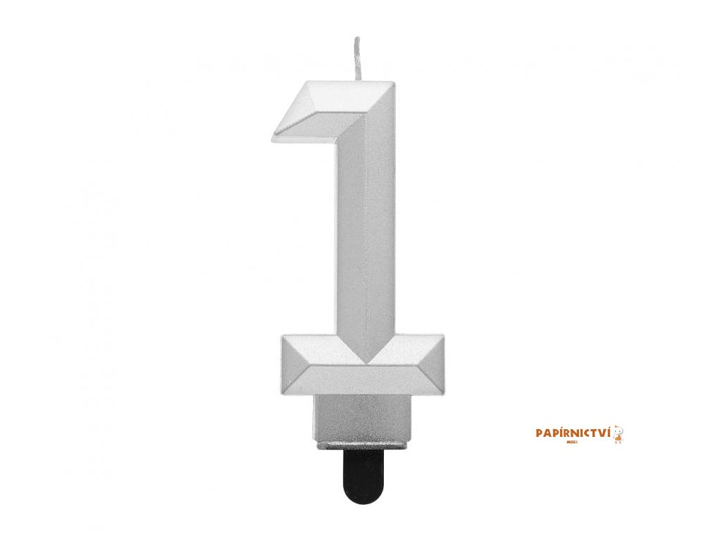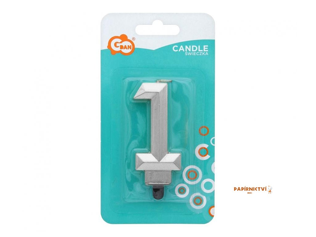 Svíčka číslo 1 - Diamant, stříbrná metalíza, 7,6 cm