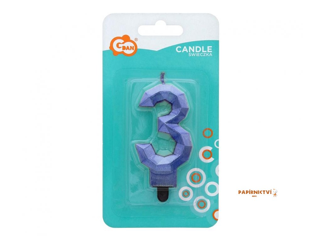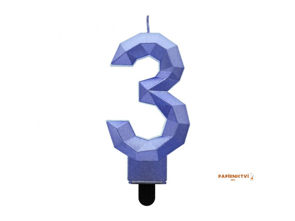 Svíčka číslo 3 - diamant, metalíza tmavě modrá, 7,6 cm