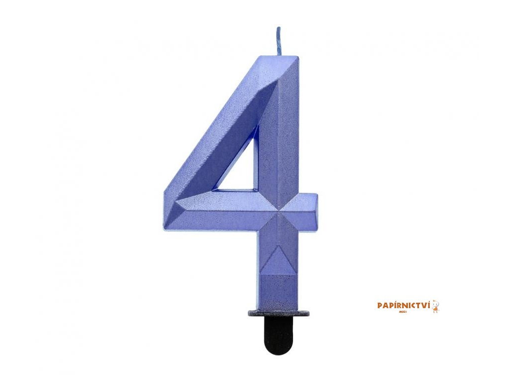 Svíčka číslo 4 - diamant, metalická tmavě modrá, 7,6 cm
