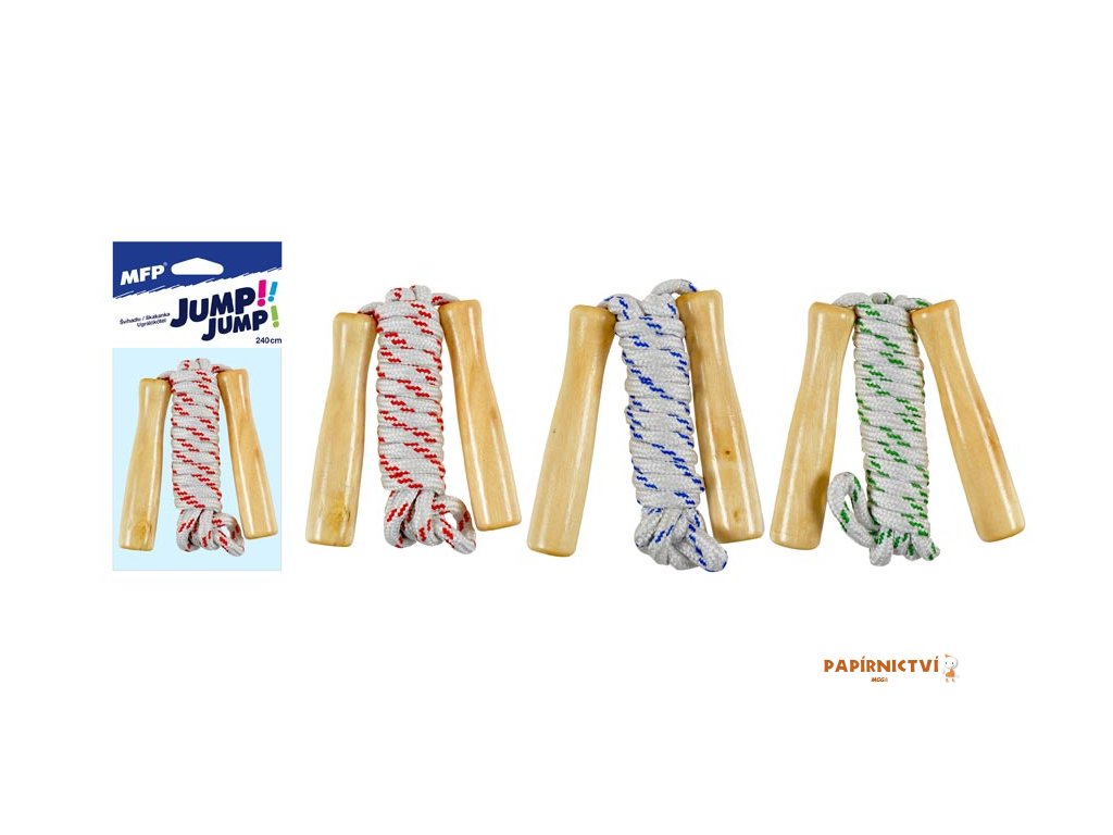 Dětské švihadlo, dřevěné rukojeti, délka lana 240cm, mix barev.