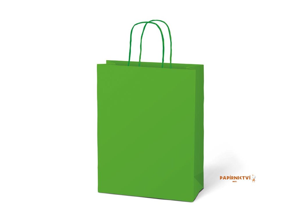 Dárková taška T5 vyrobená z pevného kraftového papíru v zelené barvě. Každý dárek musí být v něčem zabalený. Pokud nemáte čas balit ho do balicího papíru, máme pro Vás na výběr nejrůznější dárkové tašky. Taška má kroucená papírová ucha.Barva: zelená