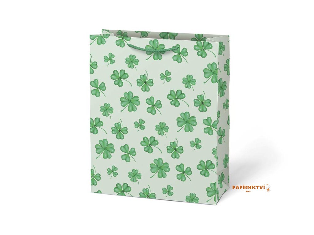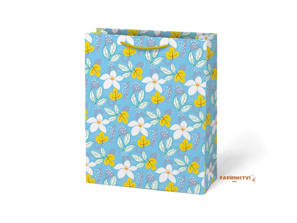 Taška je vyrobena z pevného papíru a doplněna o praktická textilní ucha, která usnadňují přenášení. Díky větším rozměrům se do ní vejde i objemnější dárek.