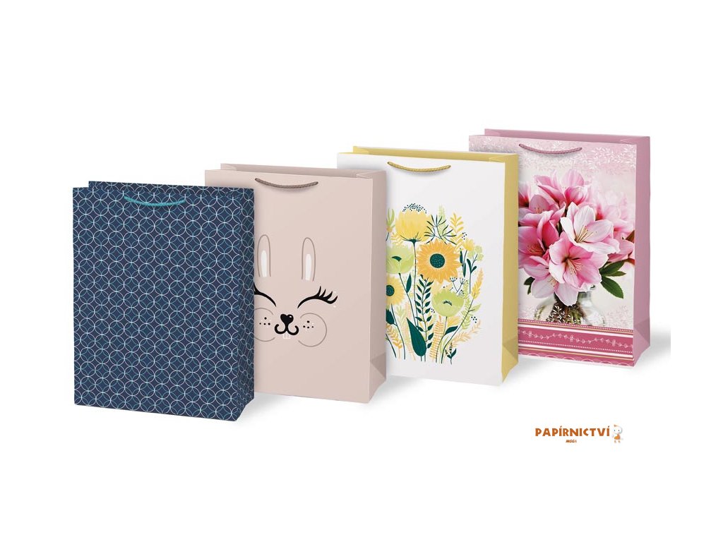 V balení najdete mix různých motivů – jemné květiny, minimalistický vzor, roztomilý zajíček i moderní ilustrace. Každá taška má vlastní charakter, všechny ale spojuje jedno: umí udělat radost ještě před rozbalením.