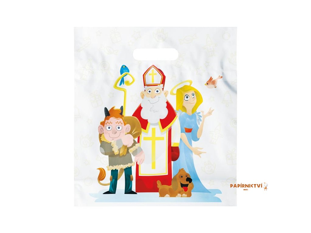 Taška s motivem Mikuláše vyrobená z PVC s průhmatem, která je ideální na zabalení dobrot, sladkostí a na další mikulášskou nadílku pro děti.Materiál: PVC