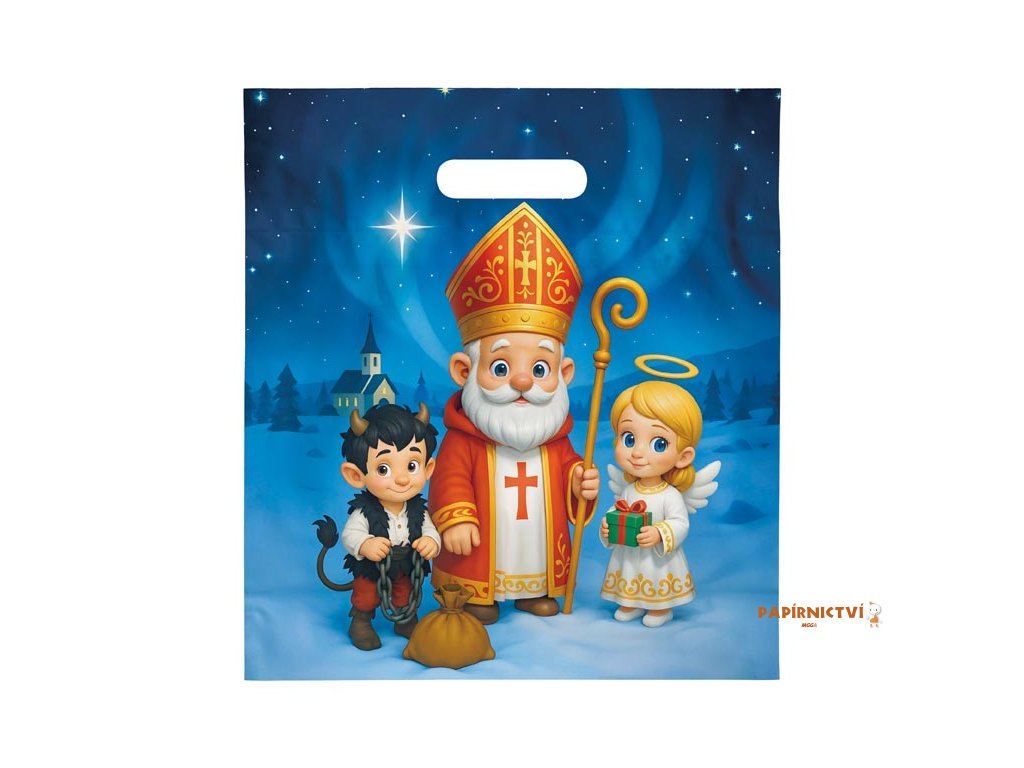 Taška MFP Mikuláš M – pohádkové balení sladkostí i dárkůMikulášská nadílka má být plná radosti – a přesně o to se postará taška MFP s motivem Mikuláše, anděla a čerta. Krásně ilustrovaný obrázek působí jako z pohádky a dětem okamžitě vykouzlí úsměv na tváři.