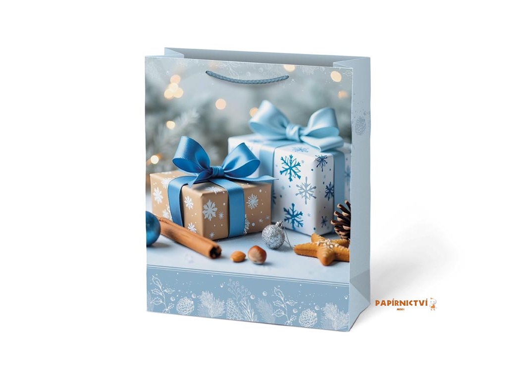MFP vánoční dárková taška T5 – kouzlo Vánoc v každém detailuZabalte svůj dárek rychle, stylově a bez starostí. Tato dárková vánoční papírová taška T5 s pevnými uchy a svátečním motivem promění i obyčejný dárek v nezapomenutelné překvapení. Díky větším rozměrům se do ní pohodlně vejde kniha, oblečení i větší drobnosti.
