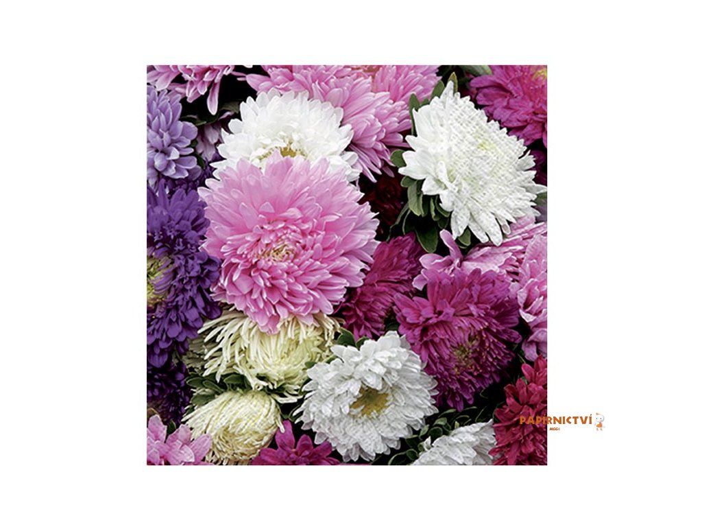 Celoroční ubrousek s květy chryzantémRozjasněte prostřený stůl pestrou květinovou dekorací. Papírový ubrousek s motivem chryzantém v růžové, fialové a bílé barvě působí svěže a elegantně, a proto se hodí jak pro běžné rodinné stolování, tak i pro sváteční chvíle či oslavy.