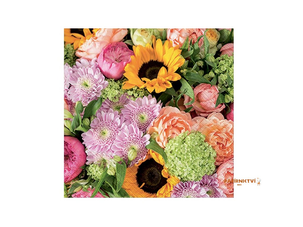 Celoroční ubrousek s květinovým motivemDodejte stolování šmrnc a jemnou eleganci. Papírový ubrousek s motivem růžových tulipánů, mašle a ozdobného motýla vnese do interiéru.