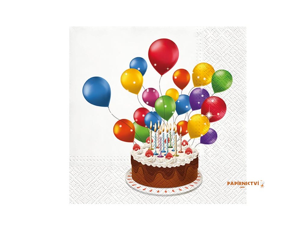 Celoroční ubrousek s dortem a balónkyOslava bez balónků a dortu? Nemožné! Tento ubrousek vám přinese oboje najednou – zářící dort se svíčkami a pestrou hromadu balónků, které k narozeninám prostě patří. Stačí prostřít a hned je jasné, že se slaví.