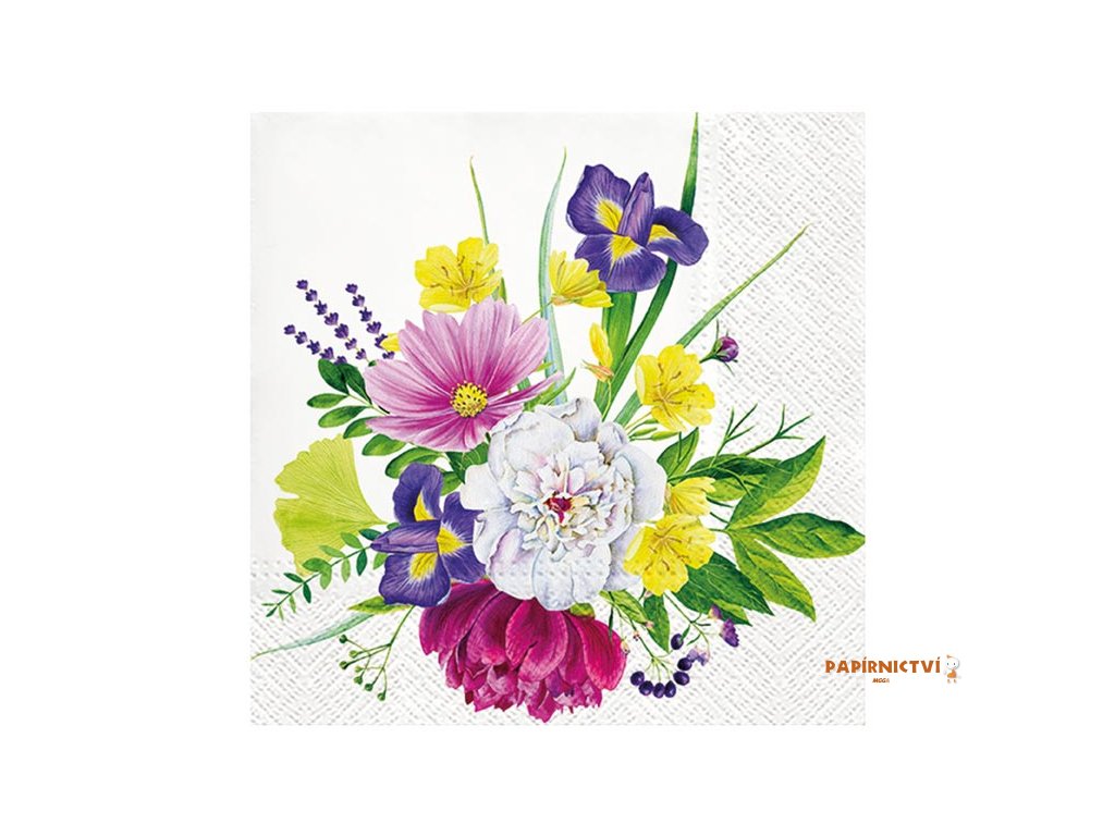Celoroční ubrousek květinová harmonieProstírání, které rozzáří každý okamžik. Tento jemný ubrousek přináší na váš stůl rozkvetlou louku plnou barev a radosti. Růžové, fialové a žluté květy se snoubí do harmonického celku, který působí svěže a slavnostně zároveň.