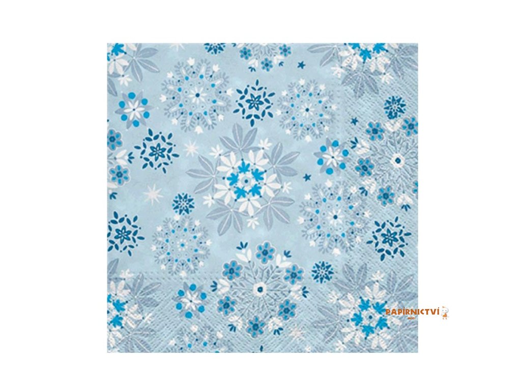 Vánoční ubrousek s modrými sněhovými vločkamiUbrousek s jemným modrým podkladem a motivem sněhových vloček navodí tu pravou zimní atmosféru. Kombinace bílé, modré a tyrkysové barvy působí svěže a elegantně, takže se skvěle hodí k vánočnímu stolování i zimním dekoracím.