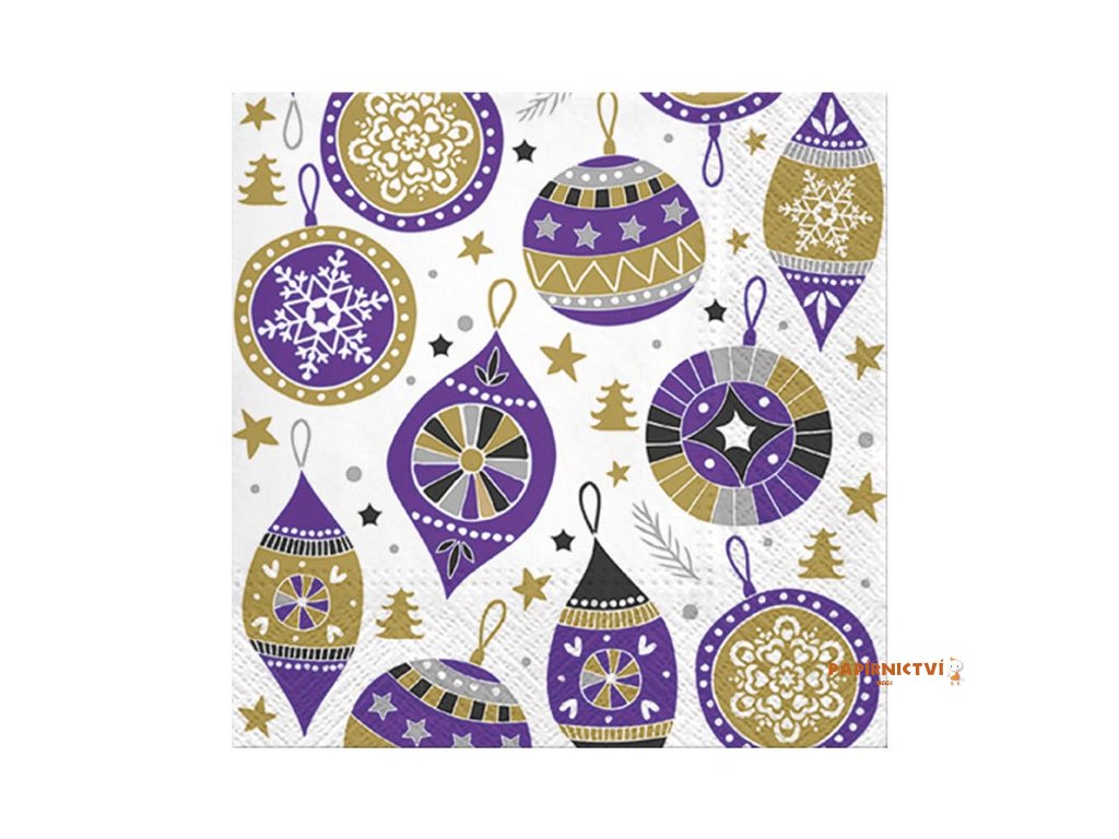 Papírový vánoční ubrousek v bílé barvě. Ubrousek je kvalitní z třívrstvého papíru s motivem barevných vánočních baněk. Vytvořeni decentní vánoční atmosféry stojí na maličkostech. I taková drobnost, jako vánoční ubrousky změní ráz vašeho stolování.