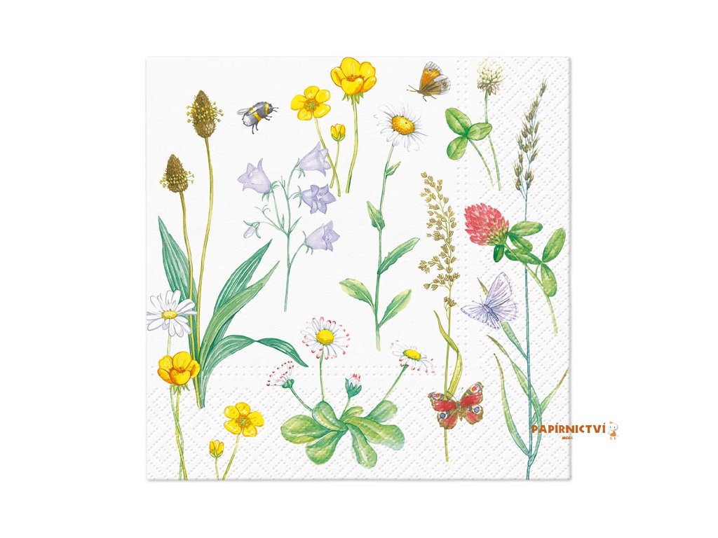 Papírový velikonoční ubrousek. Krásné velikonoční ubrousky s obrázky lučního kvítí dodají prostřenému stolu nádech přicházejícího jara a vykouzlí příjemnou atmosféru u slavnostního oběda nebo večeře. Ubrousek je kvalitní z třívrstvého papíru. Vhodný i na ubrouskovou techniku a různé dekorace.