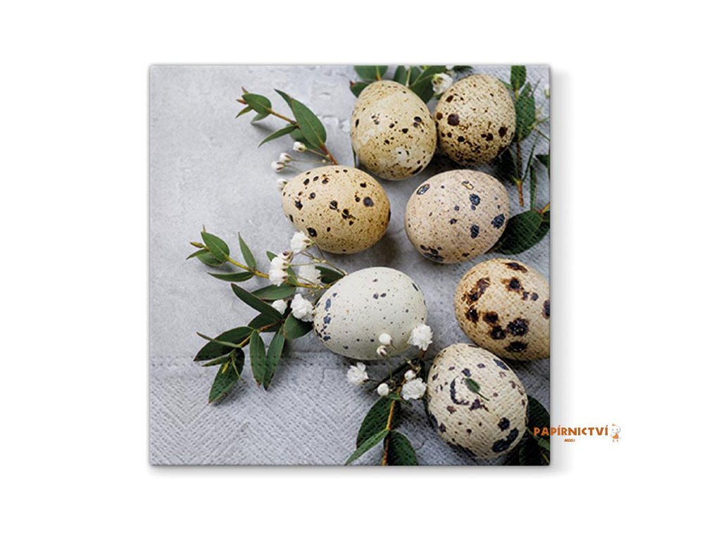 Papírový velikonoční ubrousek. Krásné velikonoční ubrousky dodají prostřenému stolu nádech přicházejícího jara a vykouzlí příjemnou atmosféru u slavnostního oběda nebo večeře. Ubrousek je kvalitní z třívrstvého papíru.MOTIV: vajíčka
