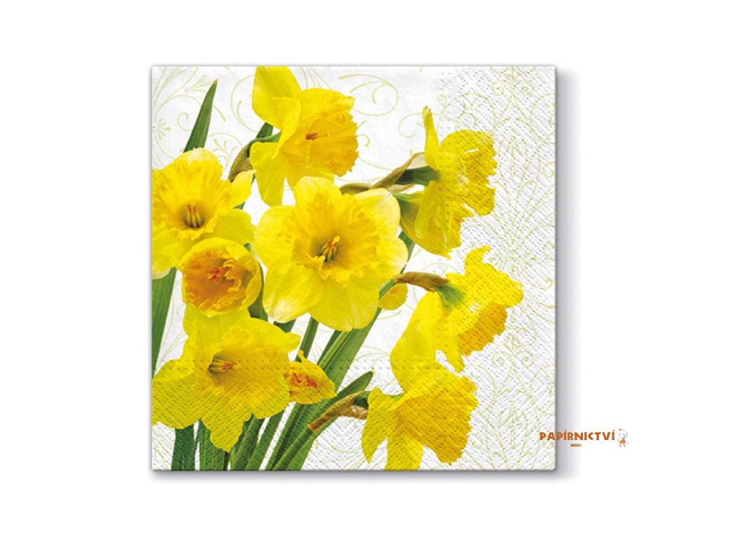 Rozjasněte svůj stůl tímto ubrouskem s motivem sytě žlutých narcisů, které symbolizují příchod jara a nový začátek.Ideální pro velikonoční hostinu, jarní oslavy nebo jako veselý detail, který vnese do vašeho domova svěžest a radost z přírody.
