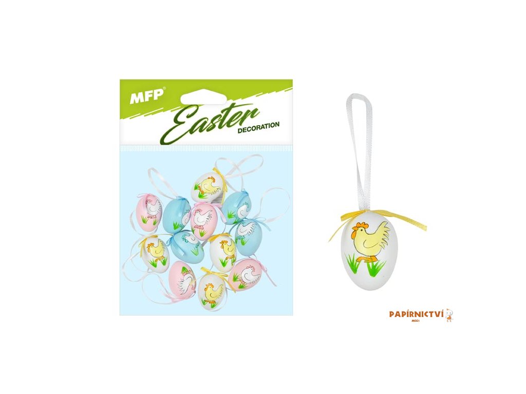 Plastová vajíčka v jarních barvách na zavěšení. Krásná velikonoční dekorace barevných vajíček s kohoutem a stuhou na zavěšení. Poslouží jako dekorace do exteriéru nebo interiéru. Dekorace má provázek na zavěšení. Nalaďte se s námi na Velikonoce!